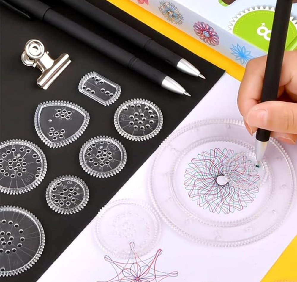استمتع بتجربة فنية فريدة مع طقم تصميم سبيروغراف الذي يجمع بين الفن والرياضيات لخلق تصاميم هندسية مذهلة. يحتوي الطقم على أدوات متكاملة تتيح لك رسم أنماط حلزونية معقدة بسهولة، مما يجعله مثاليًا للأطفال والكبار على حد سواء.